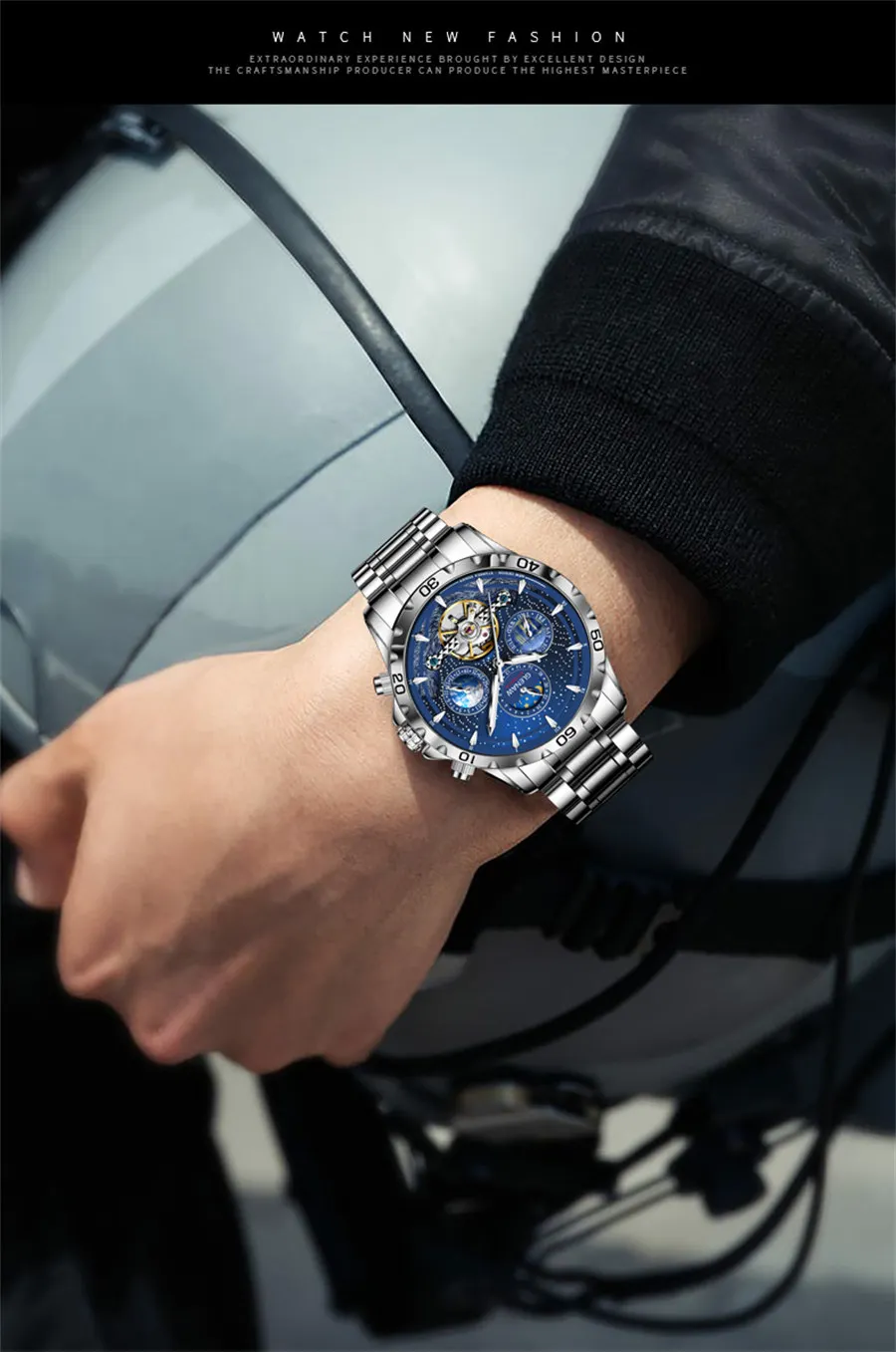 Ceas barbatesc de mana Glenaw Mecanism Full Automatic Multi Functional Tourbillon