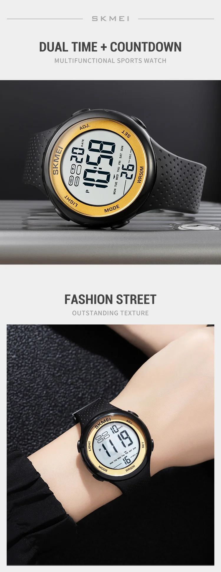 Skmei Ceas barbatesc de mana Skmei Sport Digital Vogue Casual Fashion Digital Negru Auriu