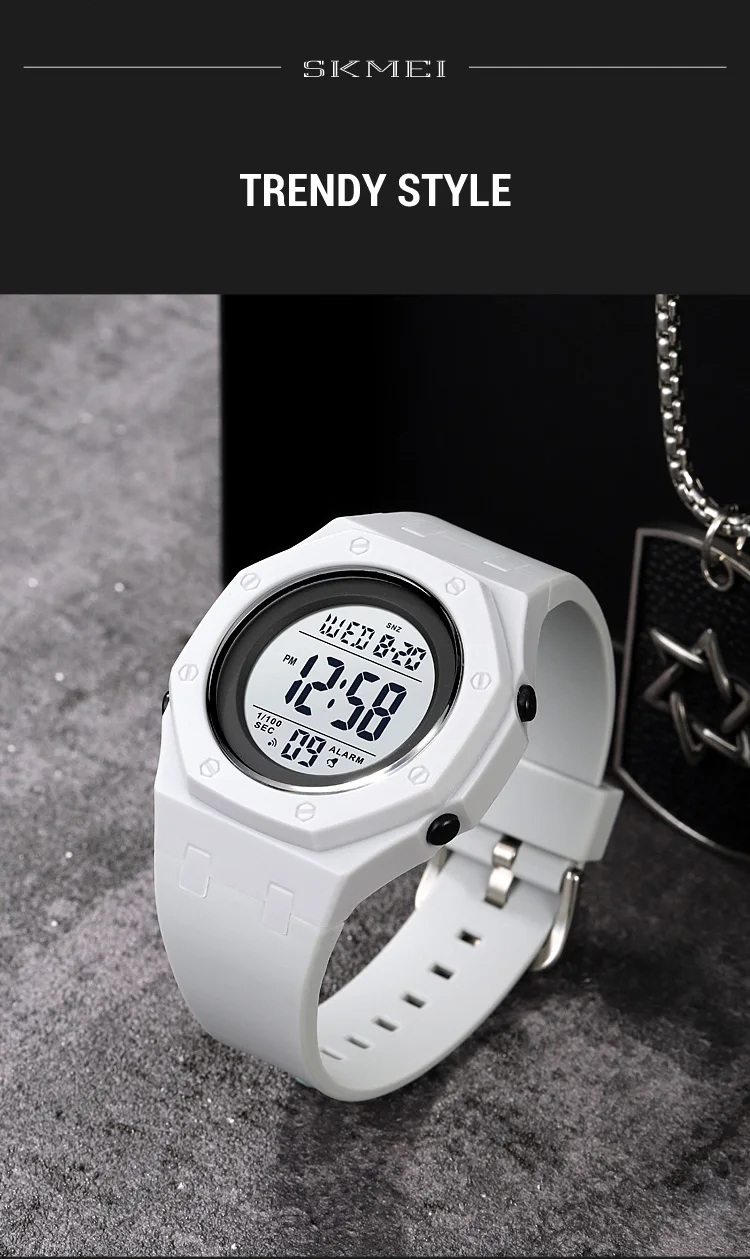 Skmei Ceas de mana barbatesc Skmei Led Sport Casual Digital Lumina de fundal Alarma Cronometru Alb