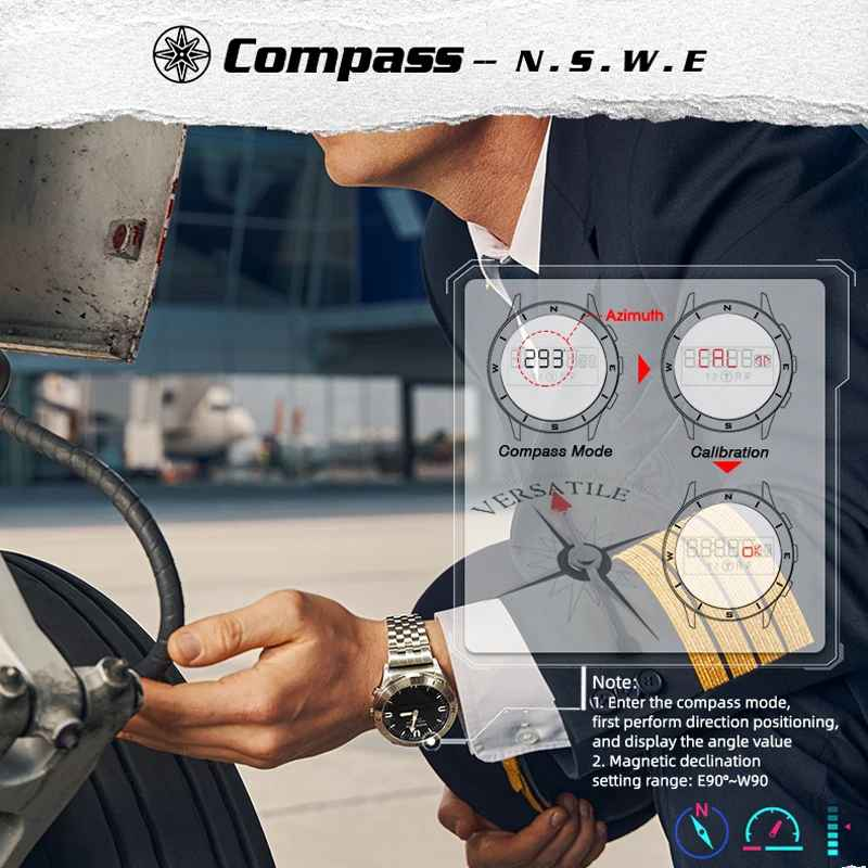 Ceas analog-digital NORTH EDGE Snow Leopard, oțel inoxidabil, altimetru, barometru, busolă, termometru, 50M waterproof