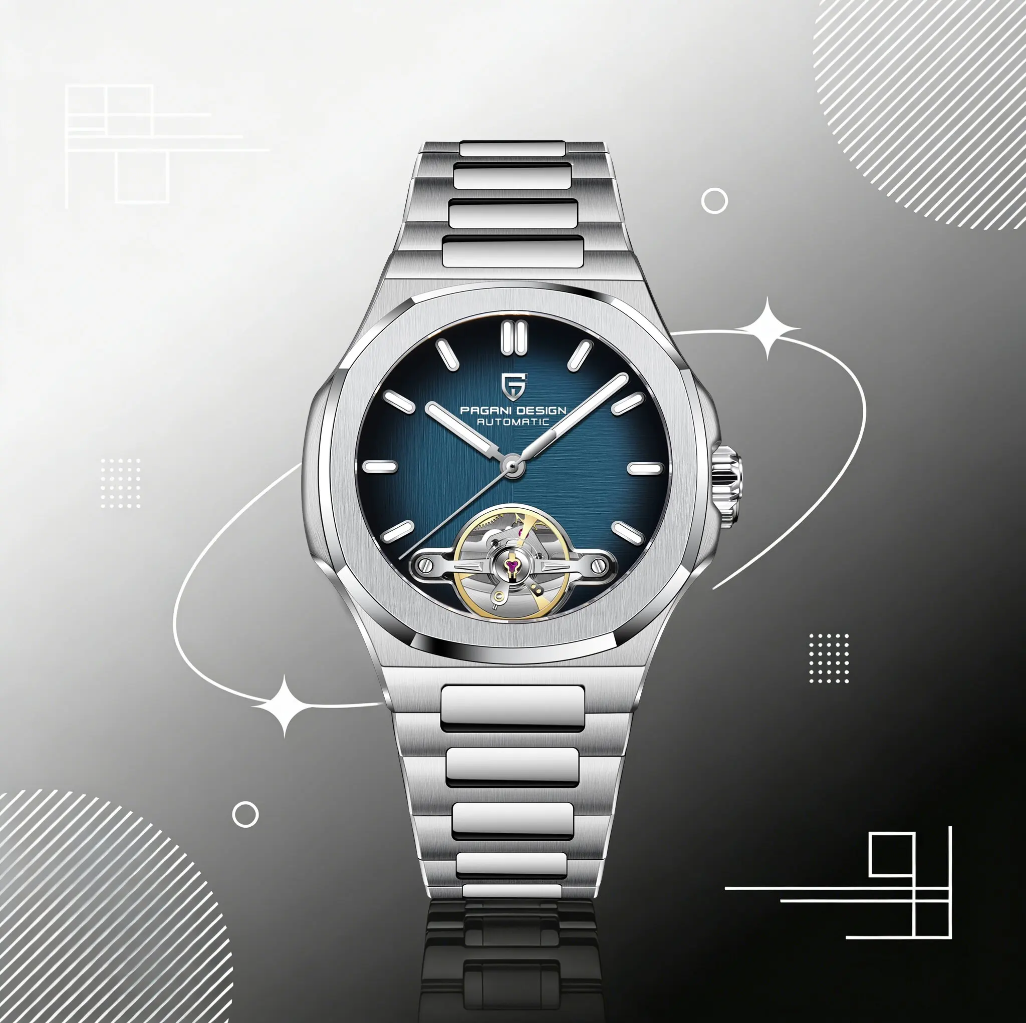 Alege un accesoriu care atrage privirile prin rafinament și detalii tehnice impresionante – ceasul automatic Pagani Design PD-YS025 în combinația spectaculoasă argintiu cu albastru.