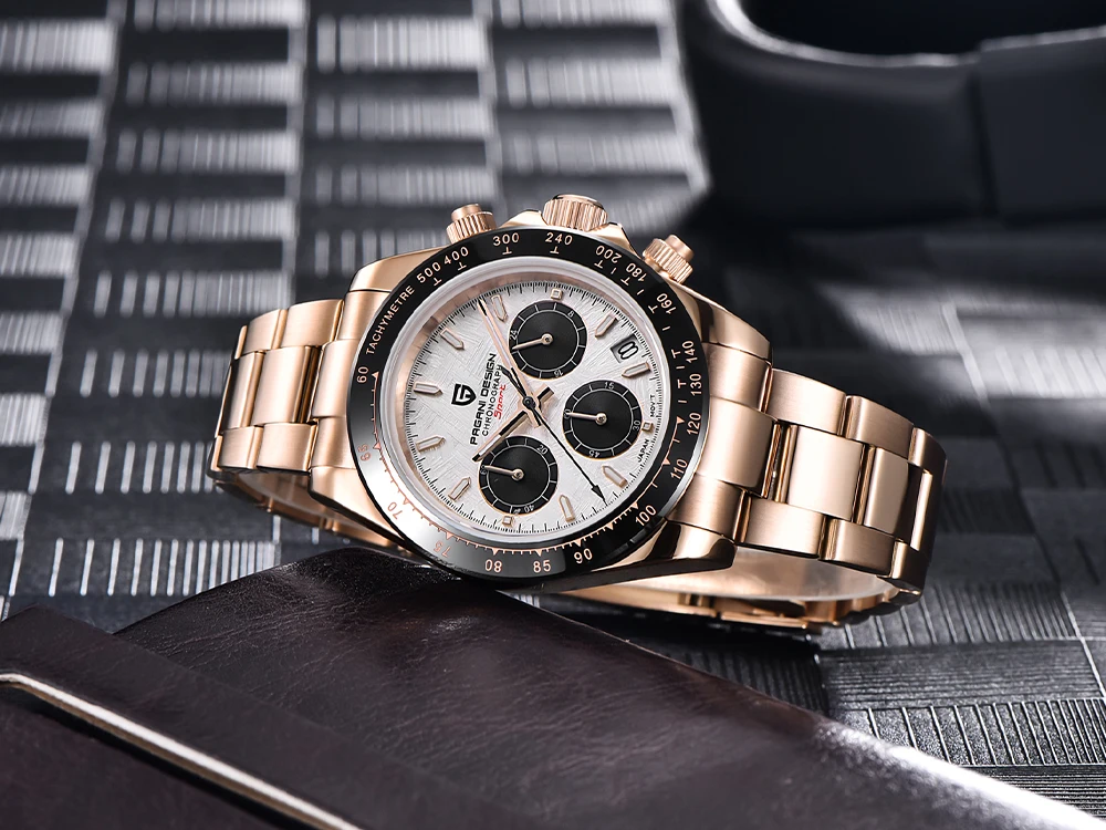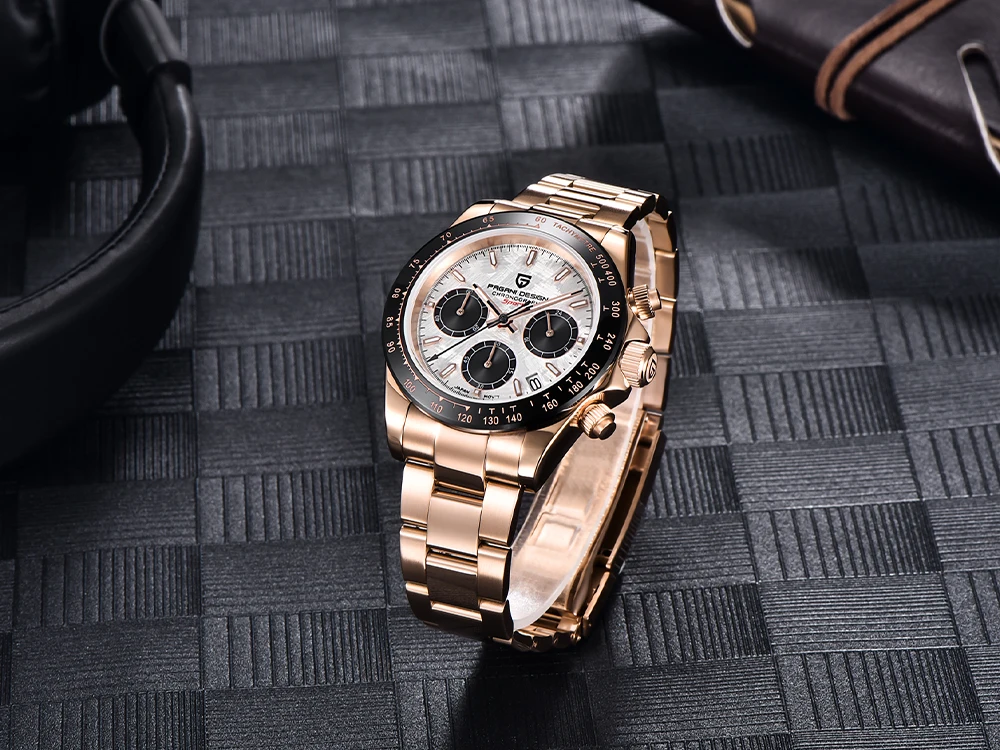 Pagani Design PD-1644 redefinește stilul modern printr-un design rafinat în nuanțe rose gold și un cadran texturat cu aspect premium, care atrage imediat atenția.