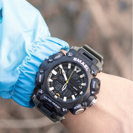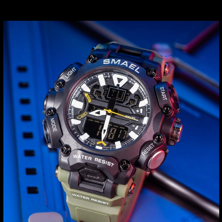 Pachetul contine: 1 x Ceas barbatesc Smael Sport Dual time Afisaj Analog Digital Rezistent la apa si socuri Verde+ 1 x Cutie originalaDurata de livrare: 24-48 ore