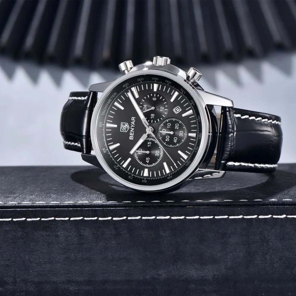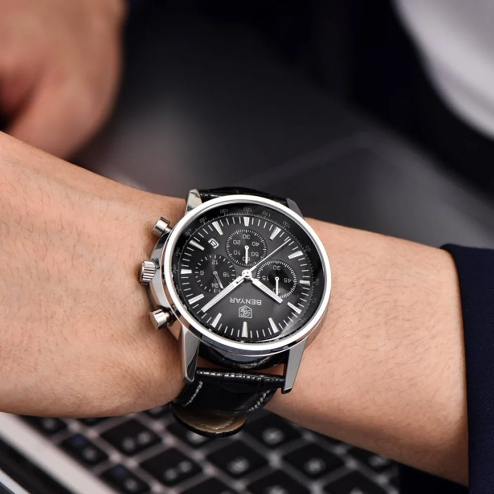 Funcții: Cronometru, Luminos, Cronograf, Calendar complet, Fus orar multiplu, Rezistent la apă, Anti-magnetic, Mâini luminoase.