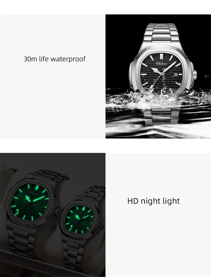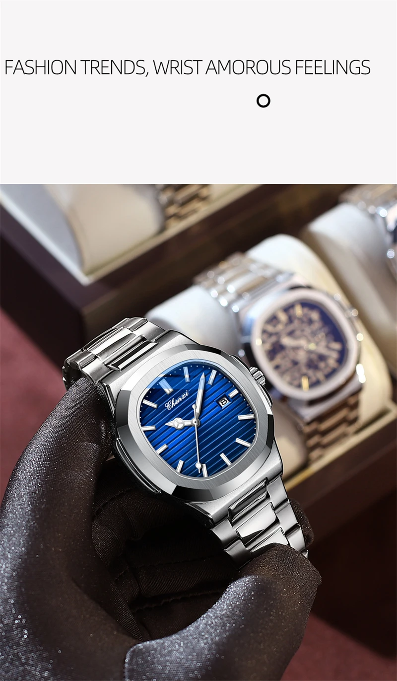CHENXI 8222 este un ceas de mână quartz cu un stil fashion & casual, ce se remarcă prin simplitatea cadranului fără marcaje și eleganța liniilor moderne. Carcasa din aliaj, cu o grosime de 14 mm și diametru cuprins între 40 și 44 mm, se îmbină armonios cu geamul din Hardlex, oferind durabilitate și un aspect rafinat.