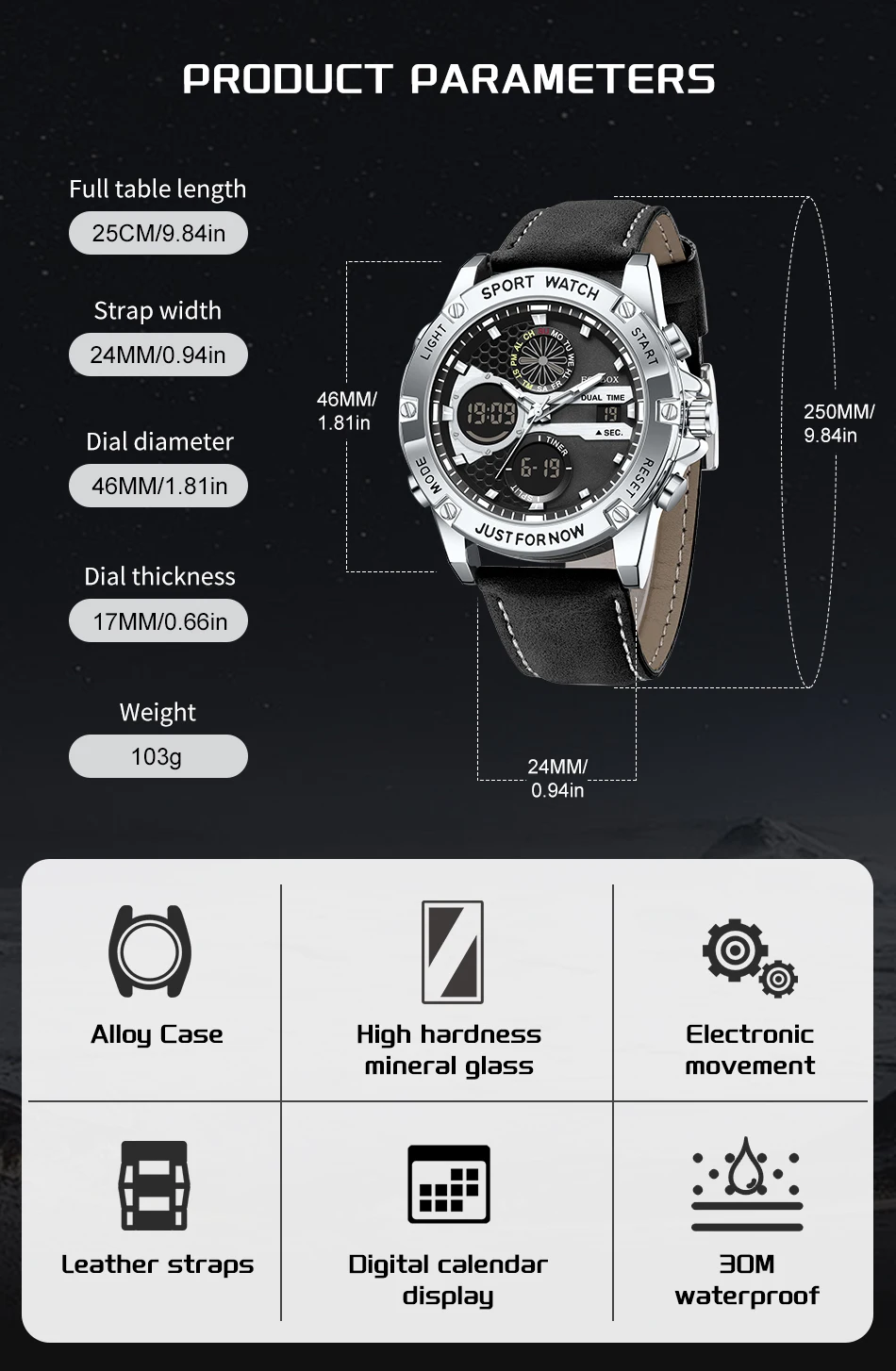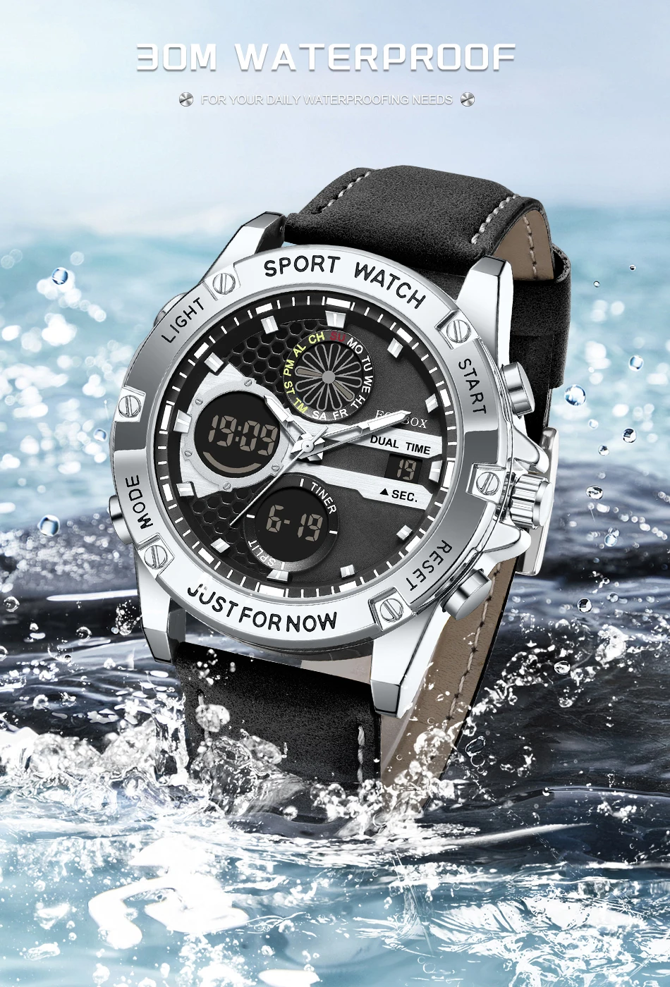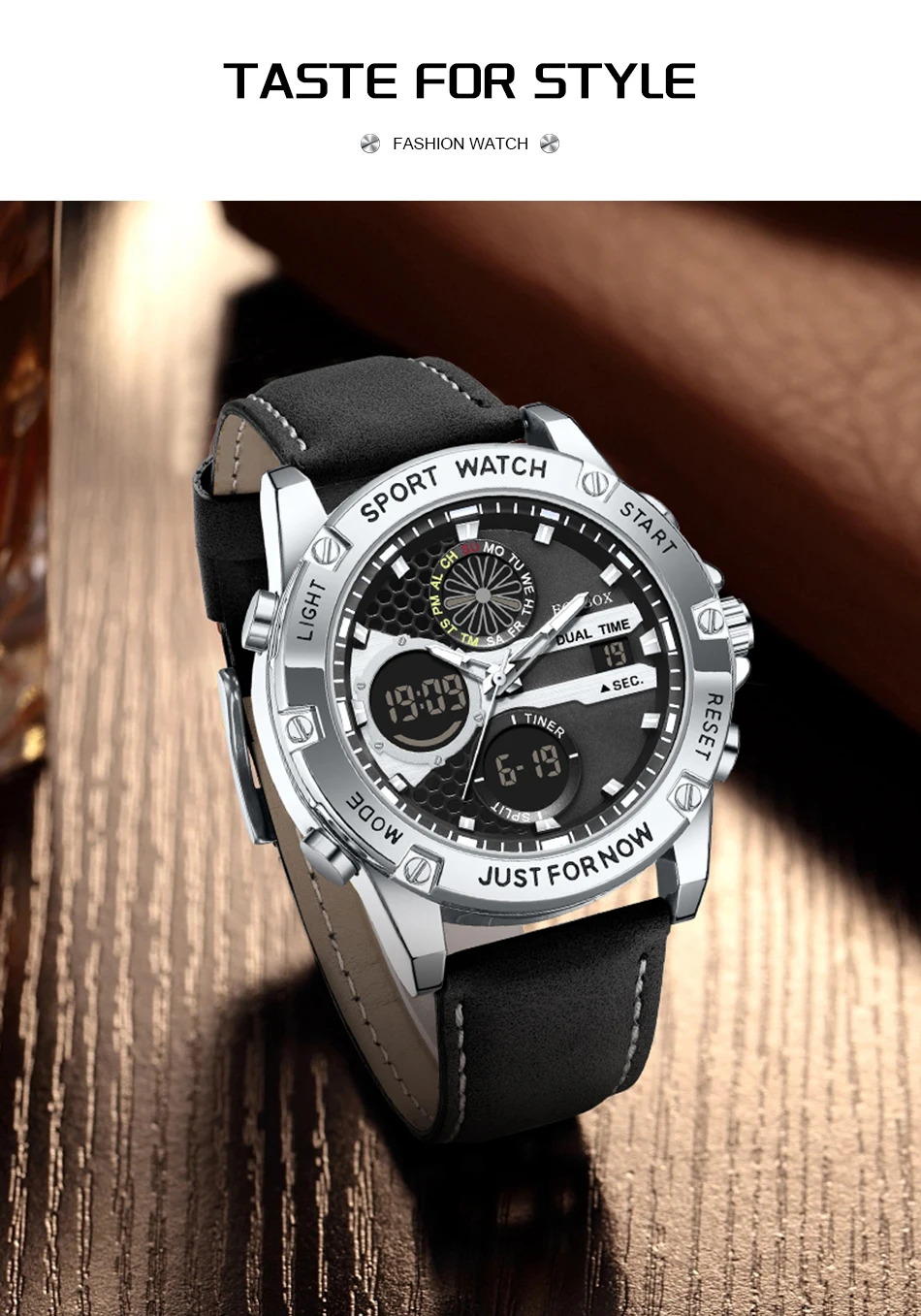 FOXBOX FB0089 este un ceas fashion-casual cu personalitate, ce îmbină eleganța unui design clasic cu funcționalitatea unui mecanism modern Dual Display. Carcasa rotundă din aliaj și geamul Hardlex îi conferă un aspect sofisticat, în timp ce brățara din piele oferă confort și un look rafinat.