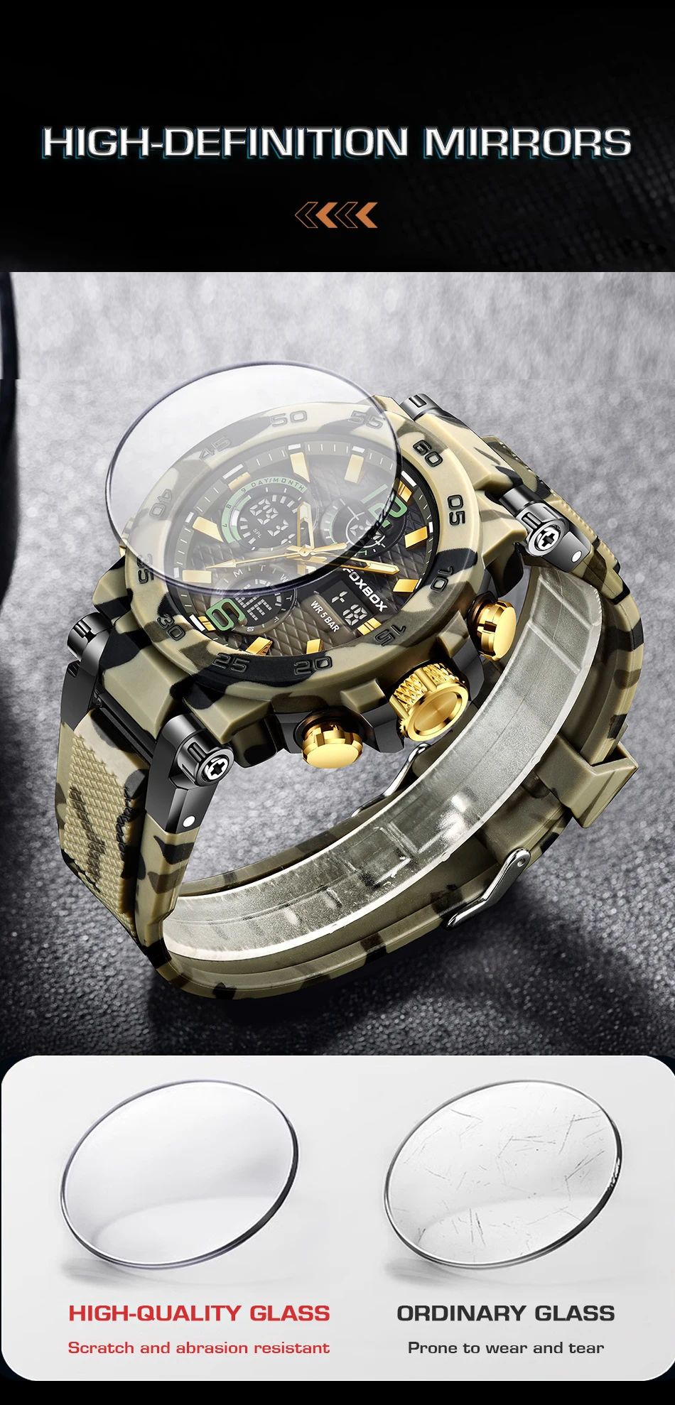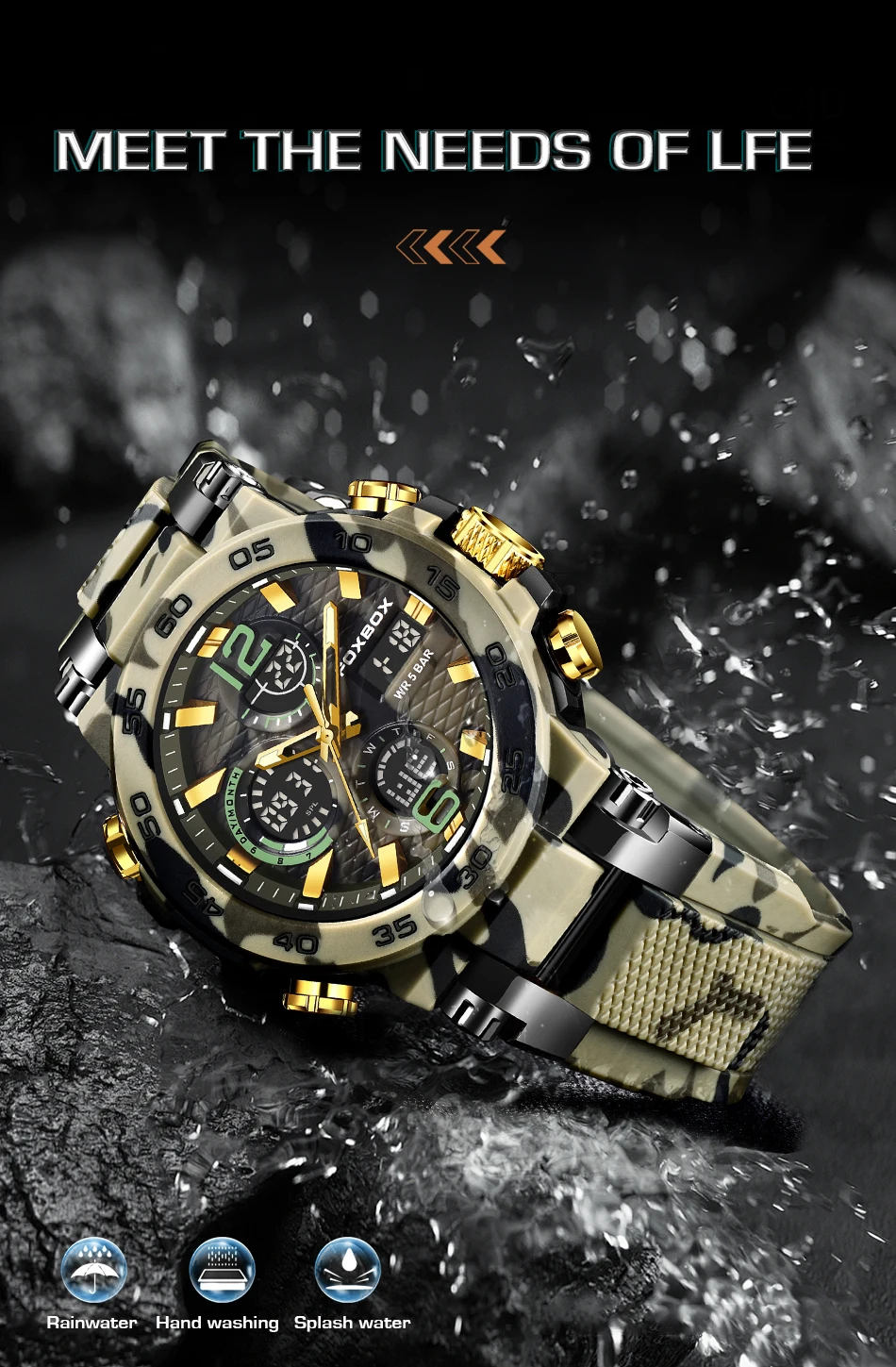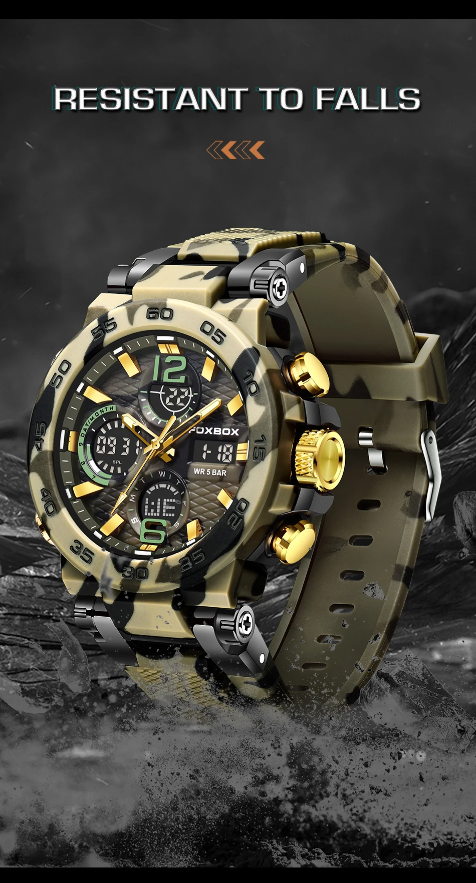 Ceasul dispune de multiple funcții esențiale: cronometru, alarmă, calendar complet, afișaj zi/dată, afișaj săptămână, limbile luminoase și afișaj LED intuitiv. În plus, mecanismul electronic LIGE și rezistența la șocuri îl fac un partener fiabil pentru orice activitate.