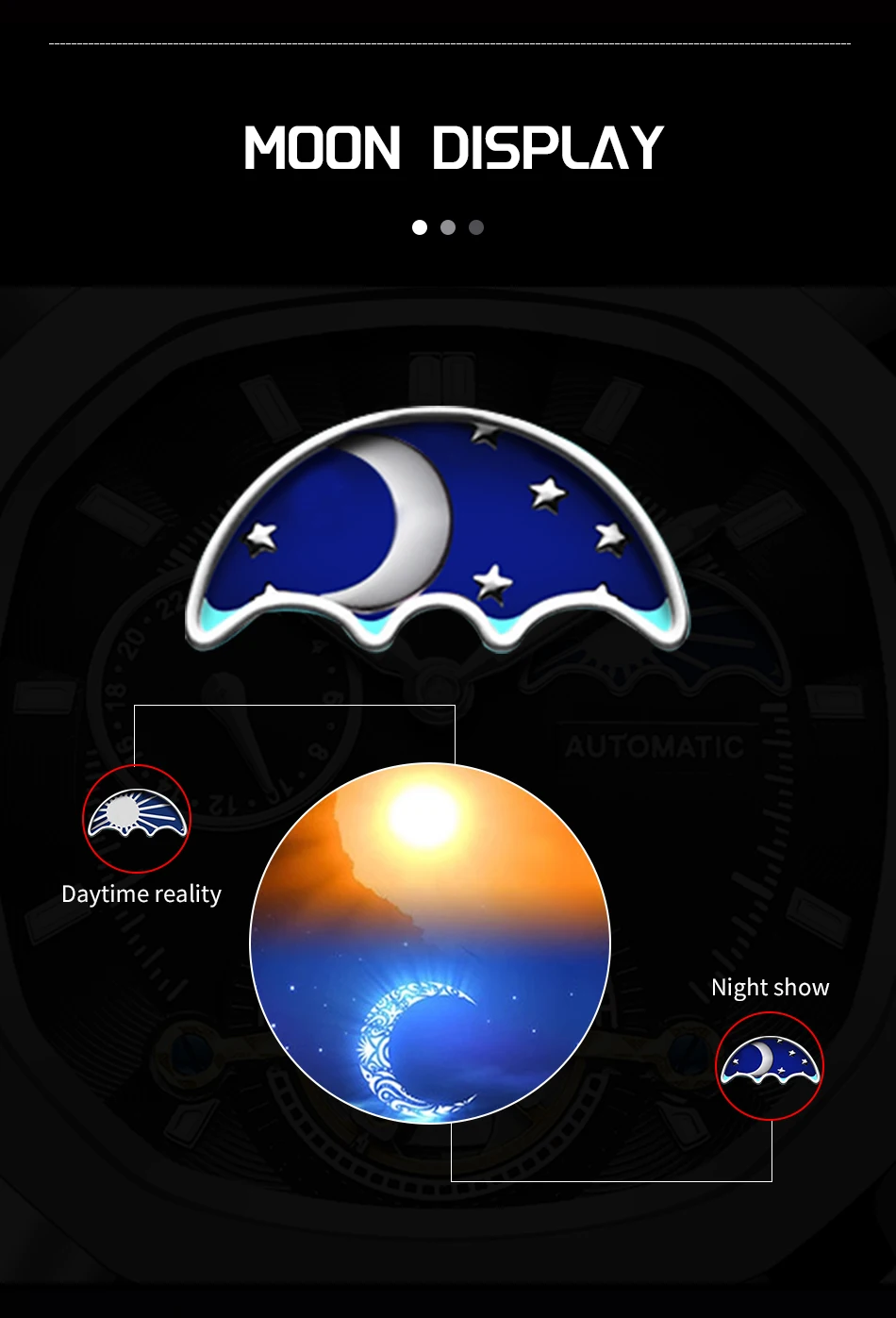 Funcții: Tourbillon, Luminos, Rezistent la șocuri, Fază lunară.