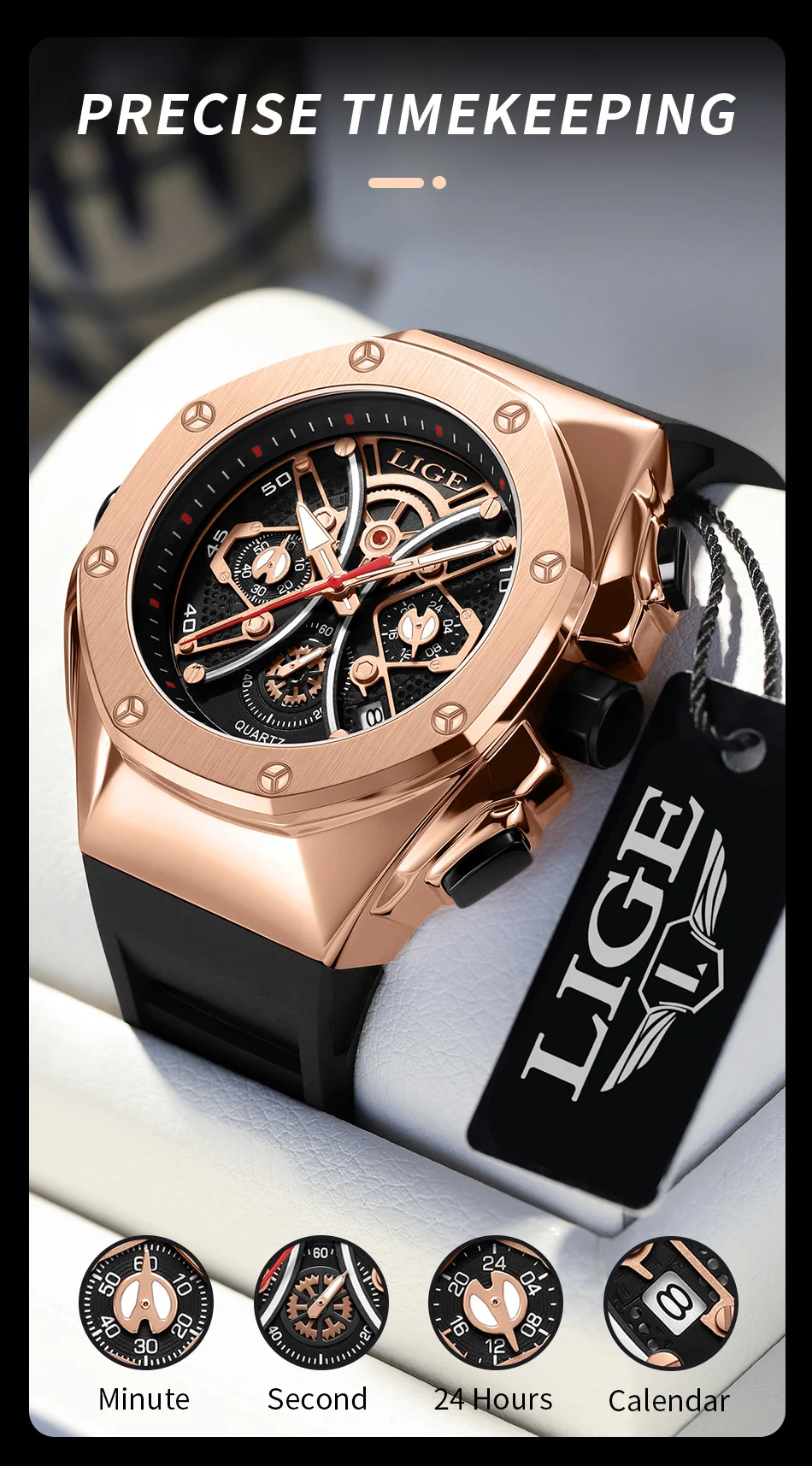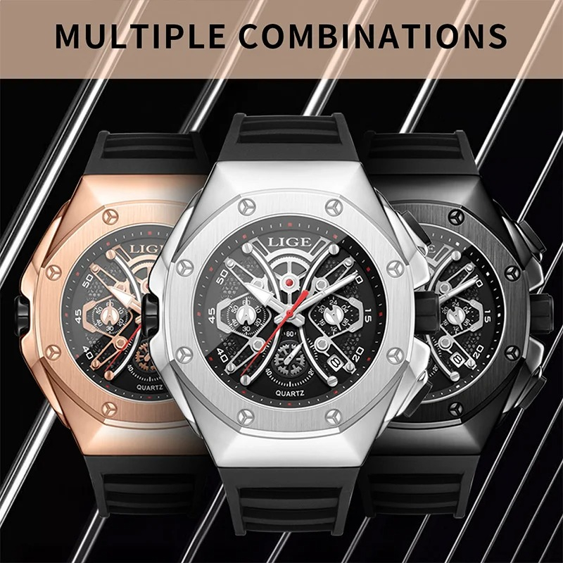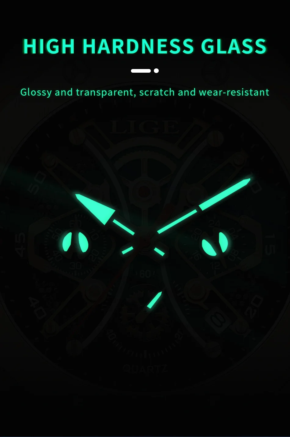 Rezistența la apă de 3 ATM îl face potrivit pentru ploaie sau stropi accidentali, iar construcția rezistentă la șocuri îi sporește durabilitatea. Cu un stil ce îmbină sportul și eleganța casual, acest model LIGE este un ceas versatil, adaptat atât pentru activitățile de zi cu zi, cât și pentru momentele relaxate din timpul liber.