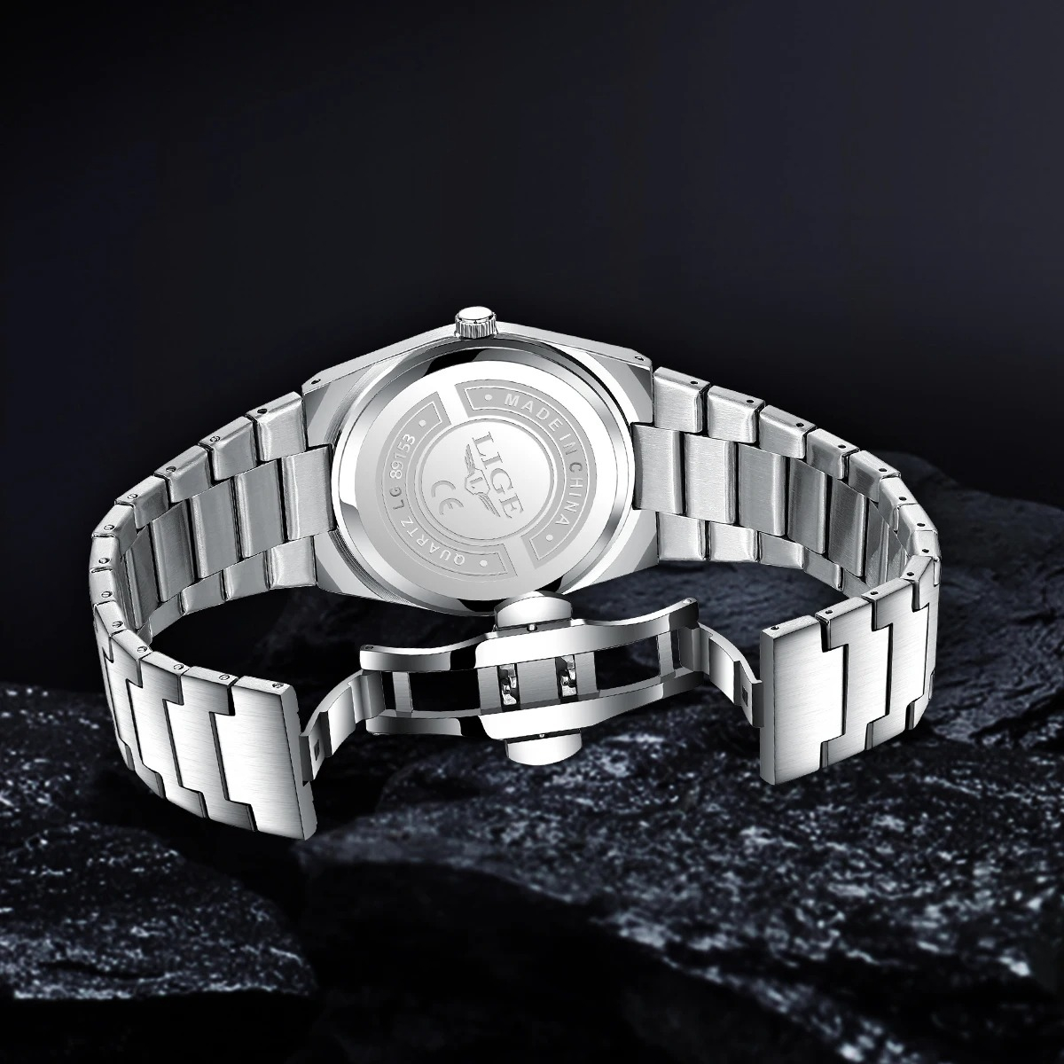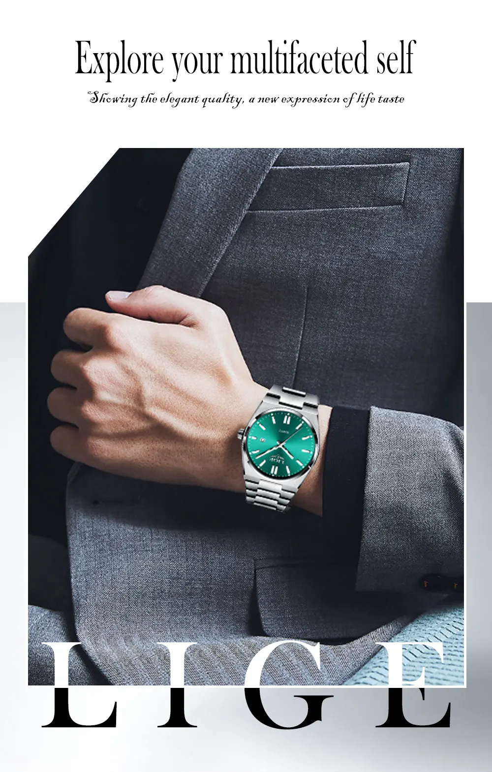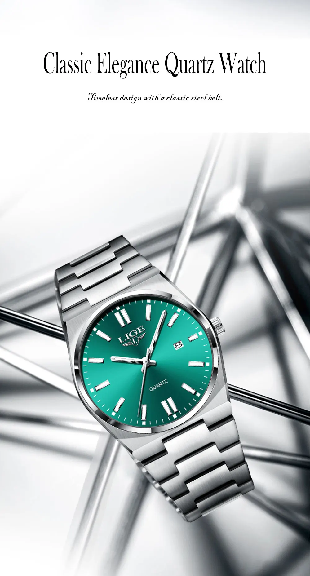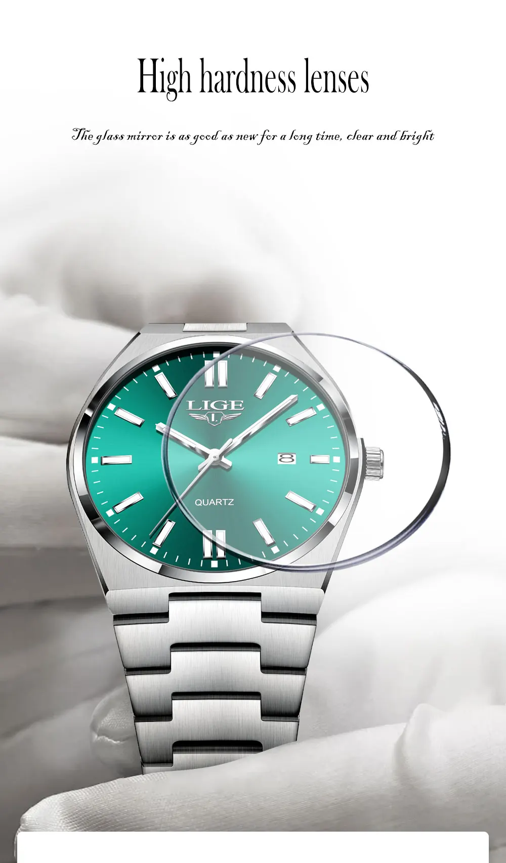 LIGE 89153 este un ceas Quartz fashion & casual, care îmbină eleganța discretă cu funcționalitatea practică. Carcasa rotundă din oțel inoxidabil, cu grosimea de 8 mm și diametrul de 40–44 mm, împreună cu geamul Hardlex rezistent la zgârieturi, îi conferă un aspect modern și durabil.