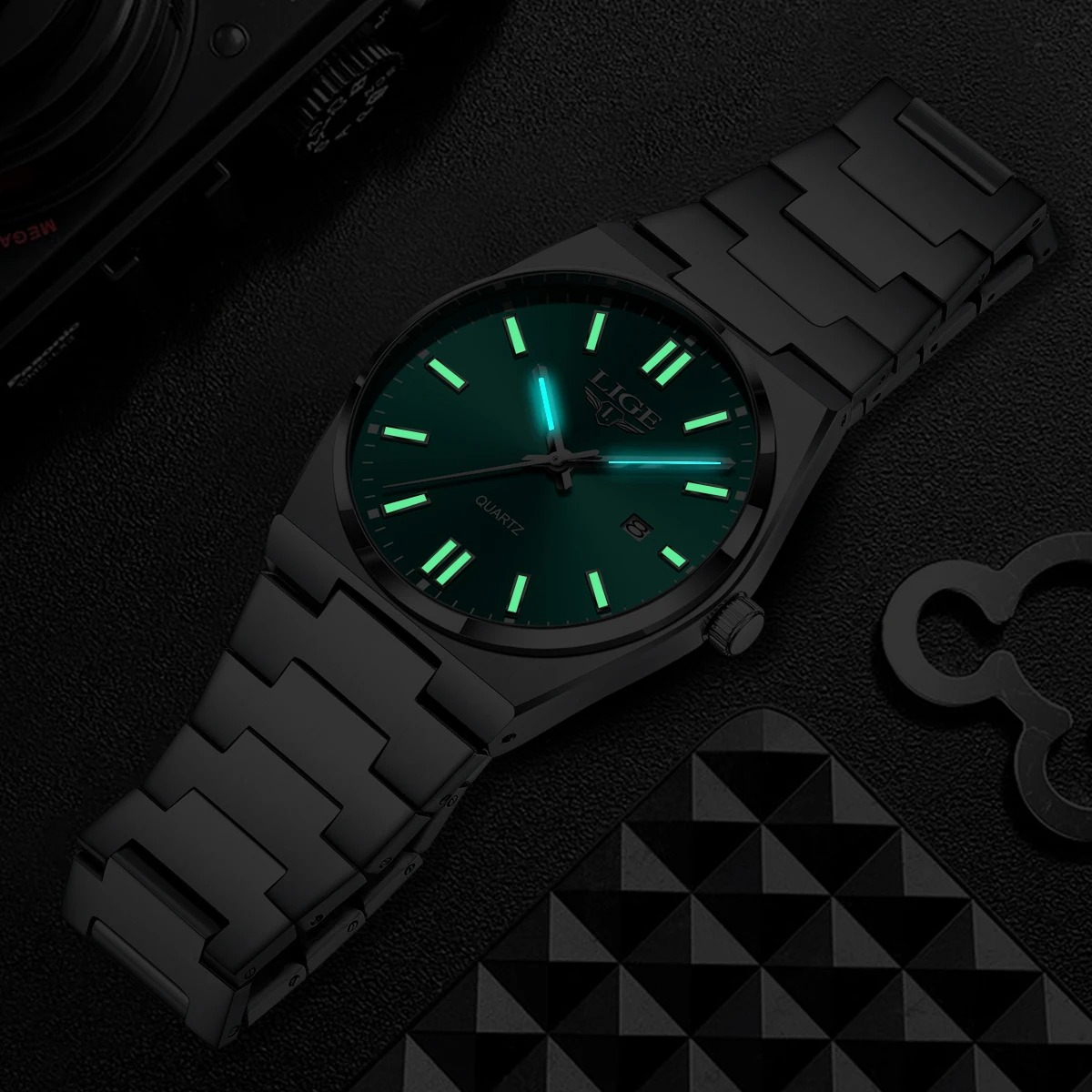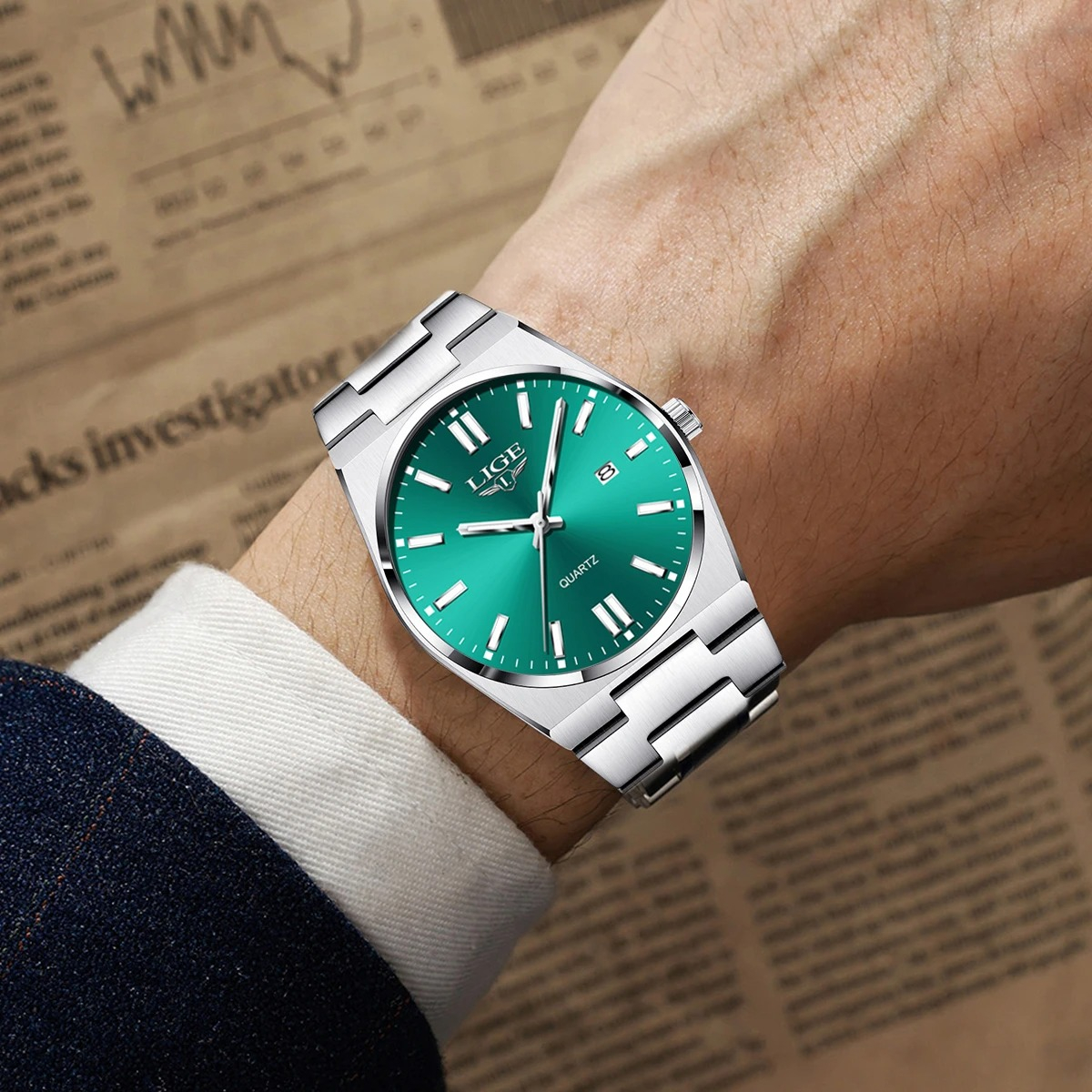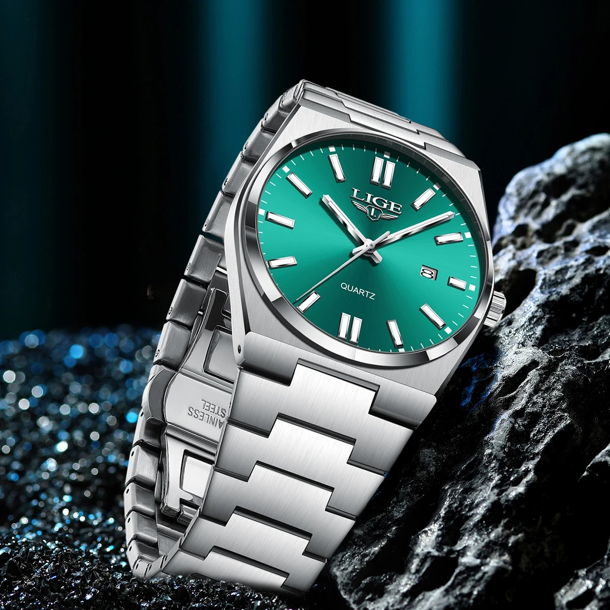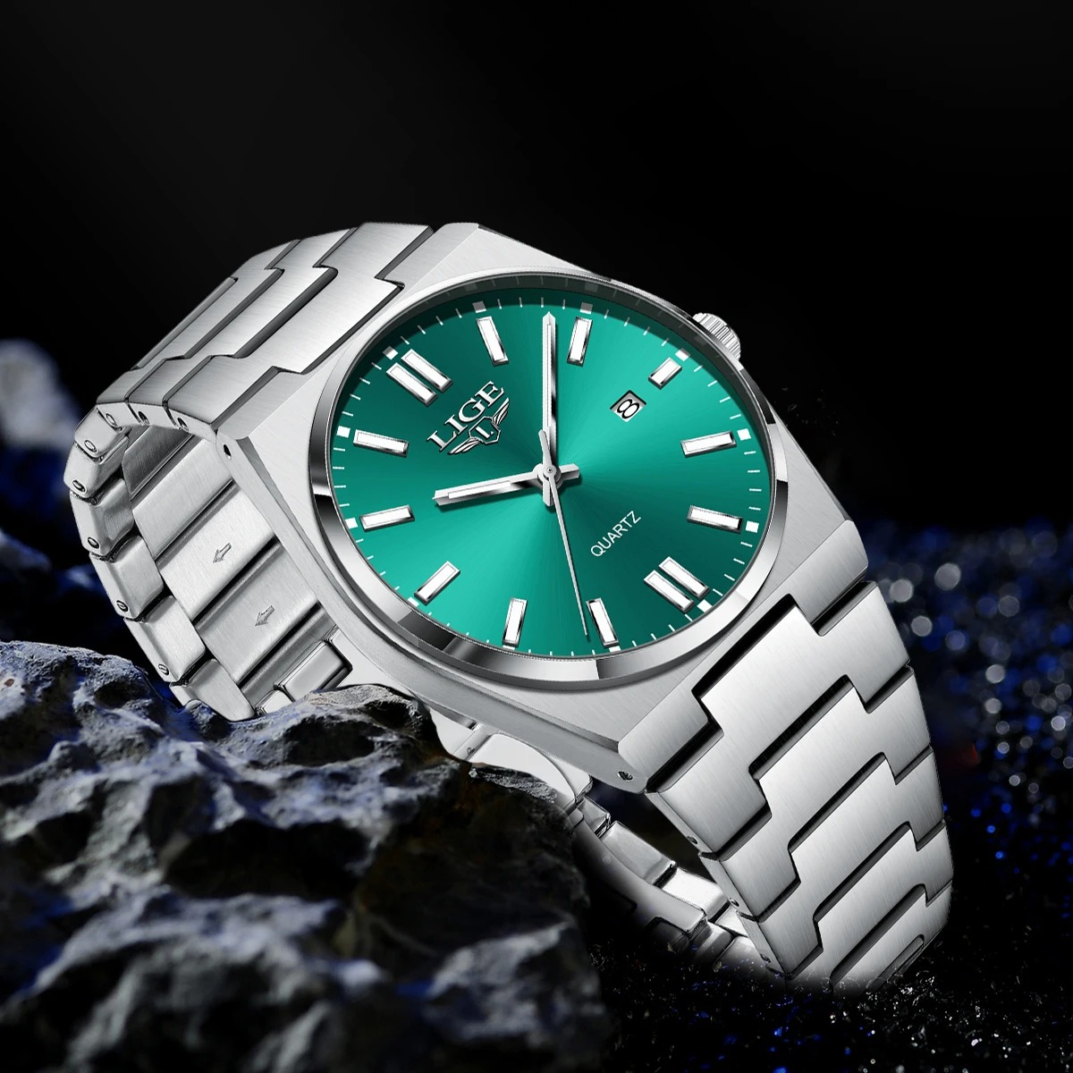 LIGE 89153 este un ceas Quartz fashion & casual, care îmbină eleganța discretă cu funcționalitatea practică. Carcasa rotundă din oțel inoxidabil, cu grosimea de 8 mm și diametrul de 40–44 mm, împreună cu geamul Hardlex rezistent la zgârieturi, îi conferă un aspect modern și durabil.