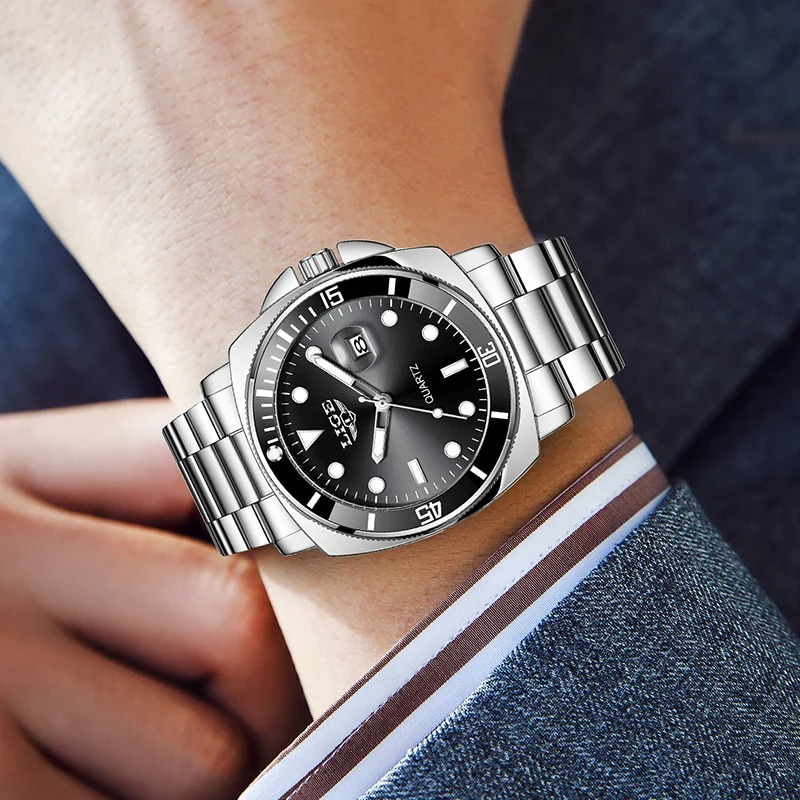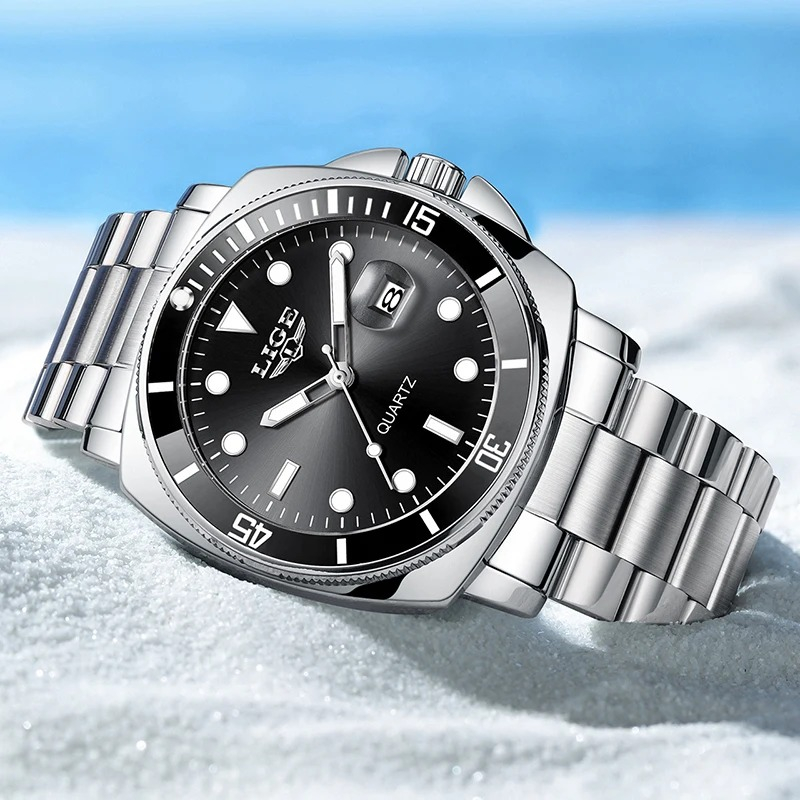 Designul minimalist, cu afișaj fără cifre, este completat de limbile luminoase și un cadran de 40–44 mm, ușor de citit în orice condiții. Ceasul oferă funcții utile pentru viața de zi cu zi: cronometru, calendar complet cu dată automată, rezistență la șocuri și apă până la 3 Bar, fiind potrivit chiar și pentru scurte sesiuni de înot.