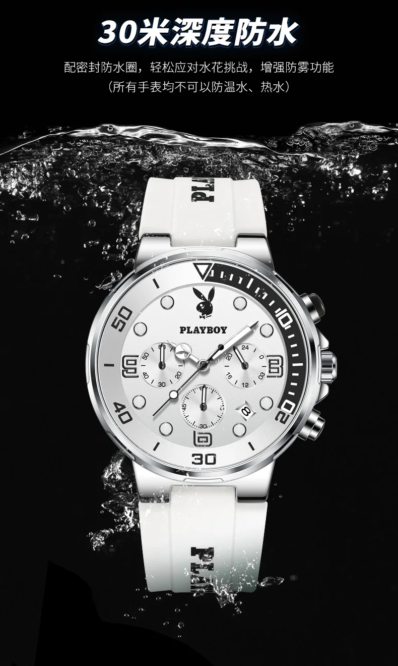 Cu rezistență la apă 3 ATM și protecție la șocuri, PLAYBOY 3036 poate fi purtat în siguranță în viața de zi cu zi sau în activități de agrement, inclusiv înot superficial. Cu o greutate de doar 67 g, combină sportivitatea cu eleganța, oferind un accesoriu versatil pentru stilul tău casual și fashion.