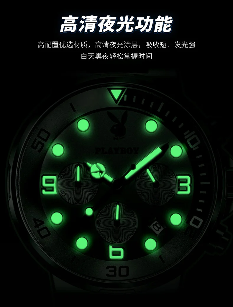 Mecanismul Quartz de origine chineză, alimentat cu baterie inclusă, oferă precizie și fiabilitate, iar funcțiile integrate – cronograf, auto date, calendar complet și afișaj luminos – fac gestionarea timpului simplă și rapidă. Mâinile luminoase și afișajul clar sporesc vizibilitatea în orice condiții.