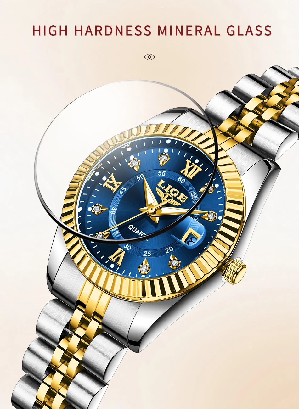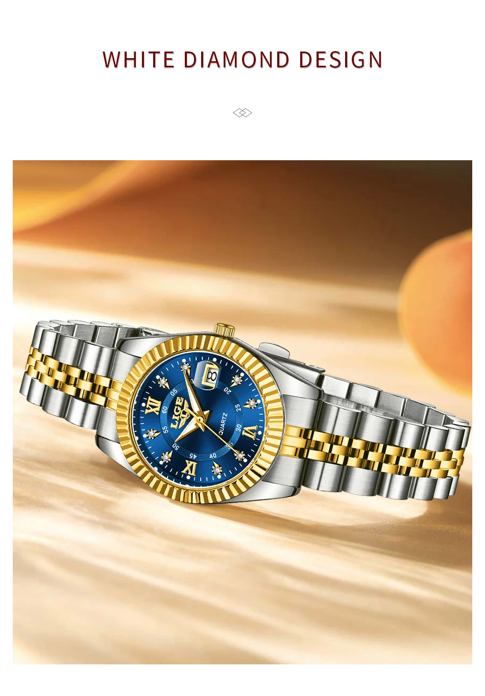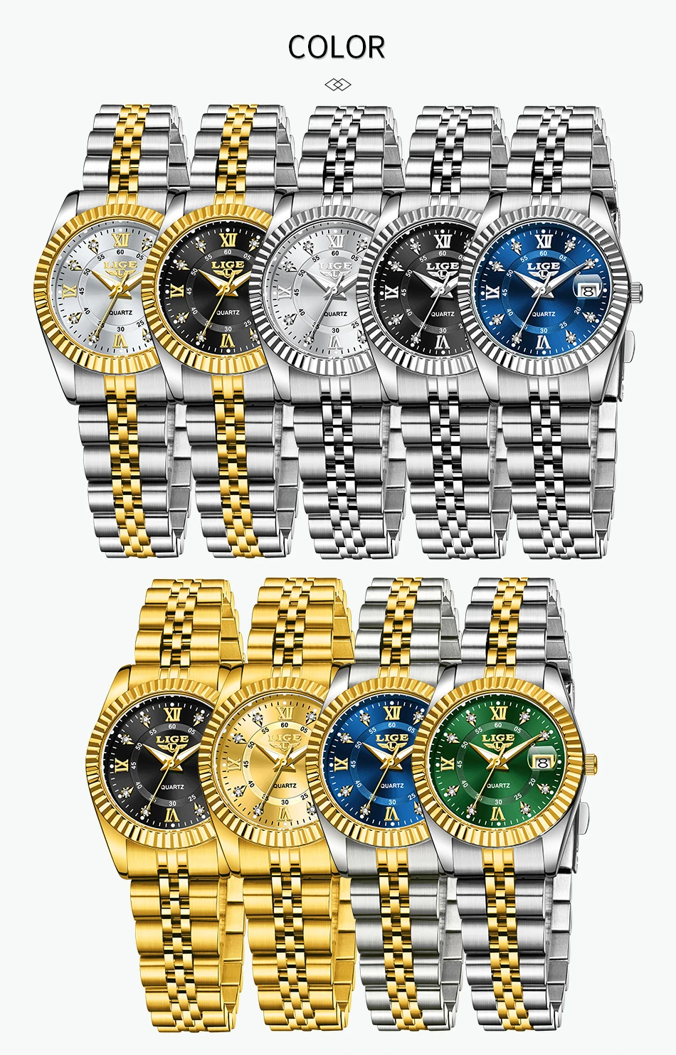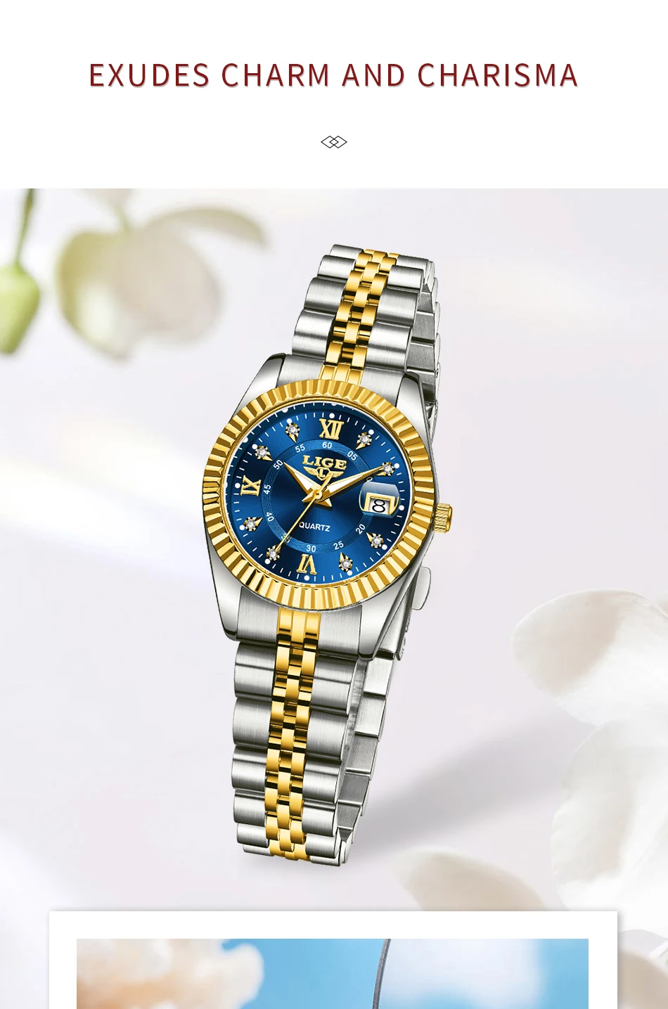 Acest ceas LIGE, cu design simplu și elegant, este un accesoriu versatil, ideal pentru femeile care apreciază stilul clasic combinat cu funcționalitatea modernă.