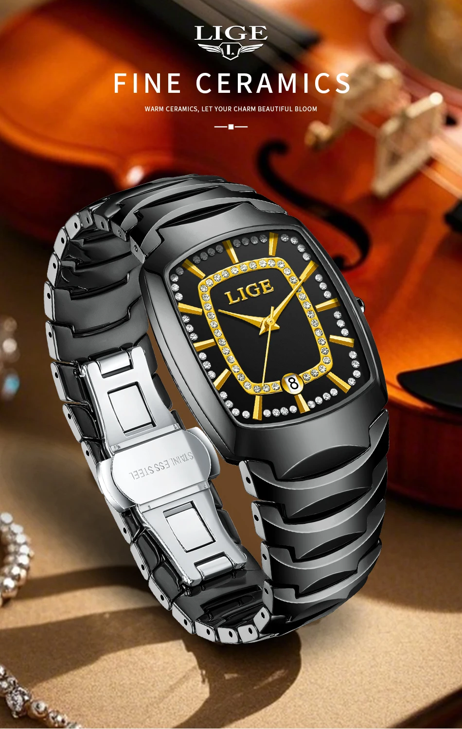 LIGE 89189 este un ceas cu personalitate, care combină eleganța modernă cu accentele sofisticate ale designului japonez și minimalist. Carcasa pătrată din aliaj și geamul Hardlex îi conferă un aspect robust și contemporan, în timp ce cureaua din ceramică, completată de catarama tip bijuterie, oferă confort și rafinament la purtare.