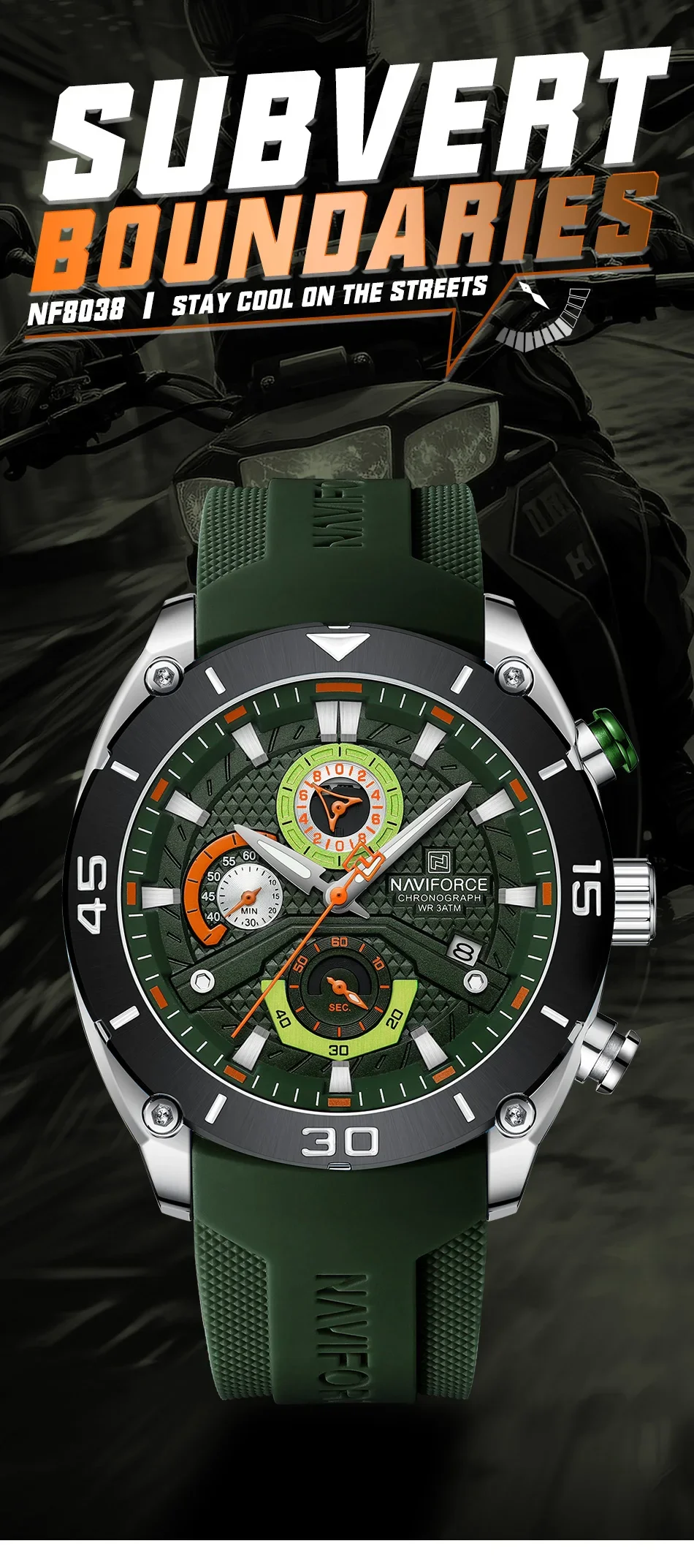 Naviforce Ceas barbatesc de mana Naviforce Sport Casual Fashion Afisare data Cronograf Verde